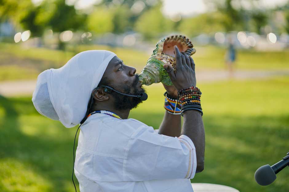 The following artists will perform for our enjoyment: percussionist Reginald Bonga, an enthusiast of voodoo jazz, a genre inspired by traditional Haitian music; artist and director Sophie Gee will present a theatrical performance, as will Baharan Baniahmadi; and Aly Keita will put on a dance and acrobatics show. Plus, dancers from the Ample Man Danse company!